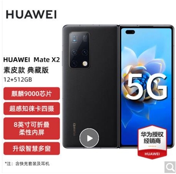 华为Mate X2折叠屏5G手机 MateX2墨黑素皮款12+512GB